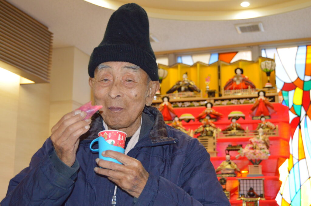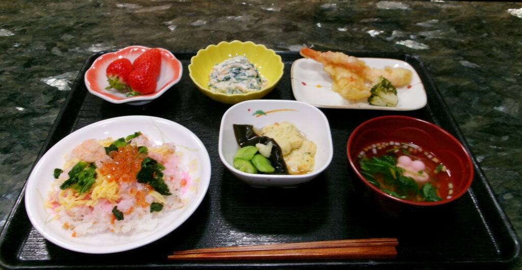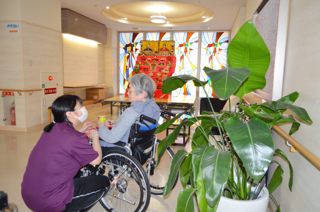 3月3日はひな祭りでしたが、光明園でも寄付でいただきました雛飾りを出し、厨房職員の手作りの特別食を食べ、職員と一緒に作った桜餅を食べ、利用者様、職員一緒に、ひな祭りを楽しみました。